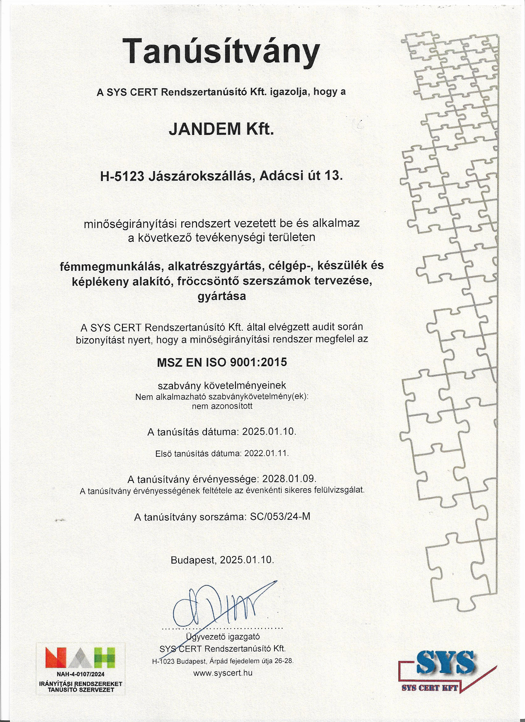 - ISO 9001:2015 (MSZ EN ISO 9001)
